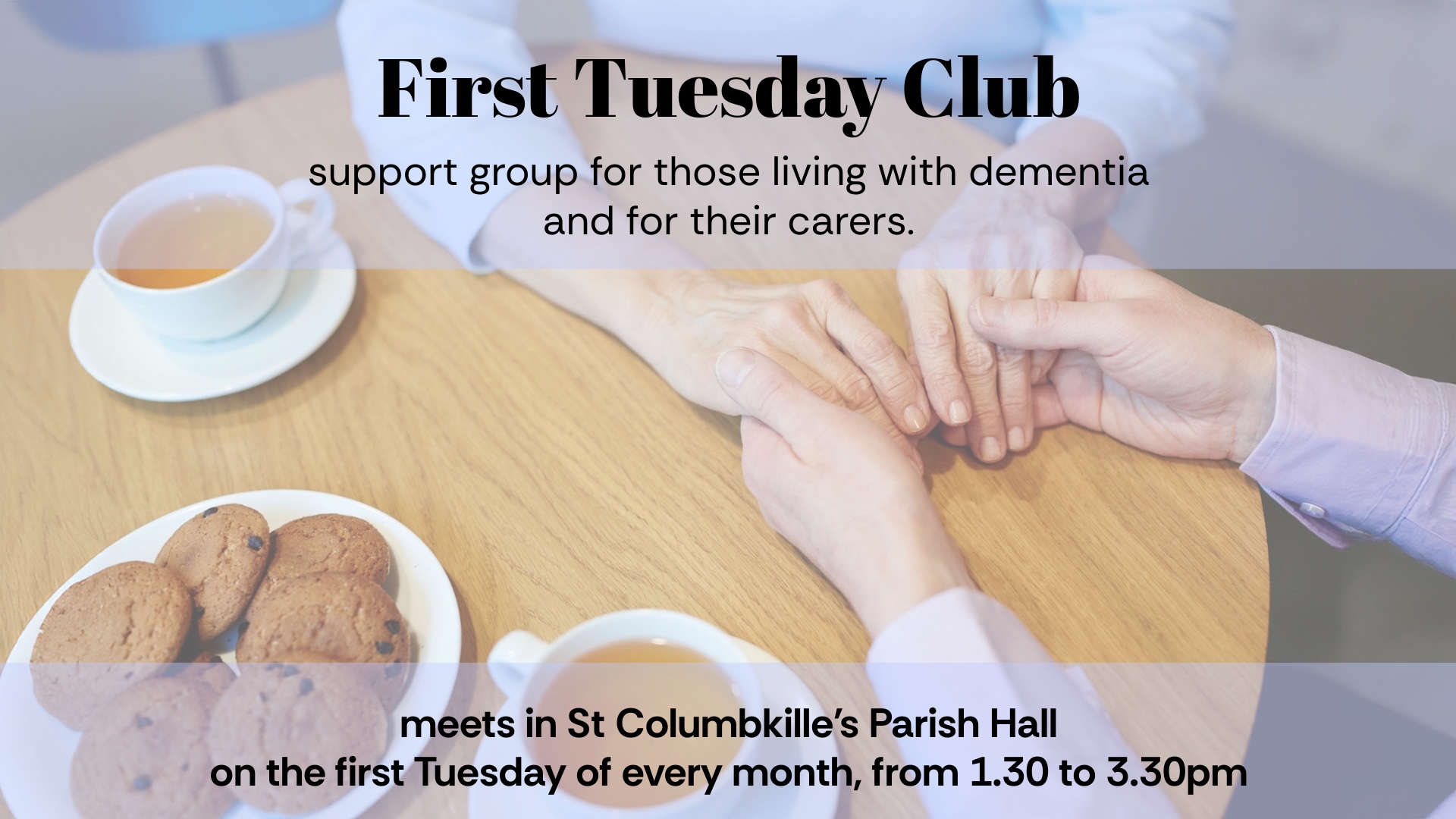 The 1st Tuesday Club meets in the Parish Hall on the first Tuesday of each month, from 1.30- 3.30pm. The 1st Tuesday Club is a support group for those living with dementia and their carers. All welcome.
