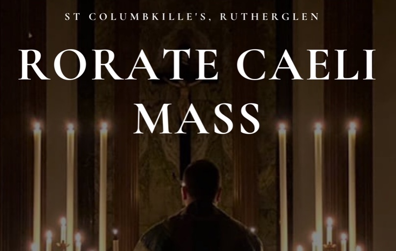 The Rorate Caeli Mass is a traditional Advent devotion where Mass is offered, in darkness just before dawn, in honour of the Blessed Virgin Mary.  The church lighting will be dimmed for this Mass.