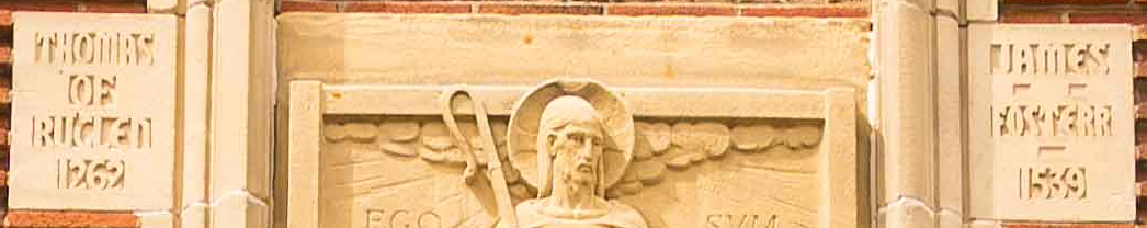 In 1189 the church in Rutherglen was “appropriated” to Paisley Abbey.  Over the centuries the Rutherglen parish was governed by a number of “vicar” priests, appointed by Paisley Abbey.  Some of their names can be seen carved above the current Presbytery door: Philip de Perthec 1226, Thomas of Ruglen 1262, James Fosterr 1539 and Hohn Houston 1540.  The last pre-Reformation priest was Matthew Fleming.