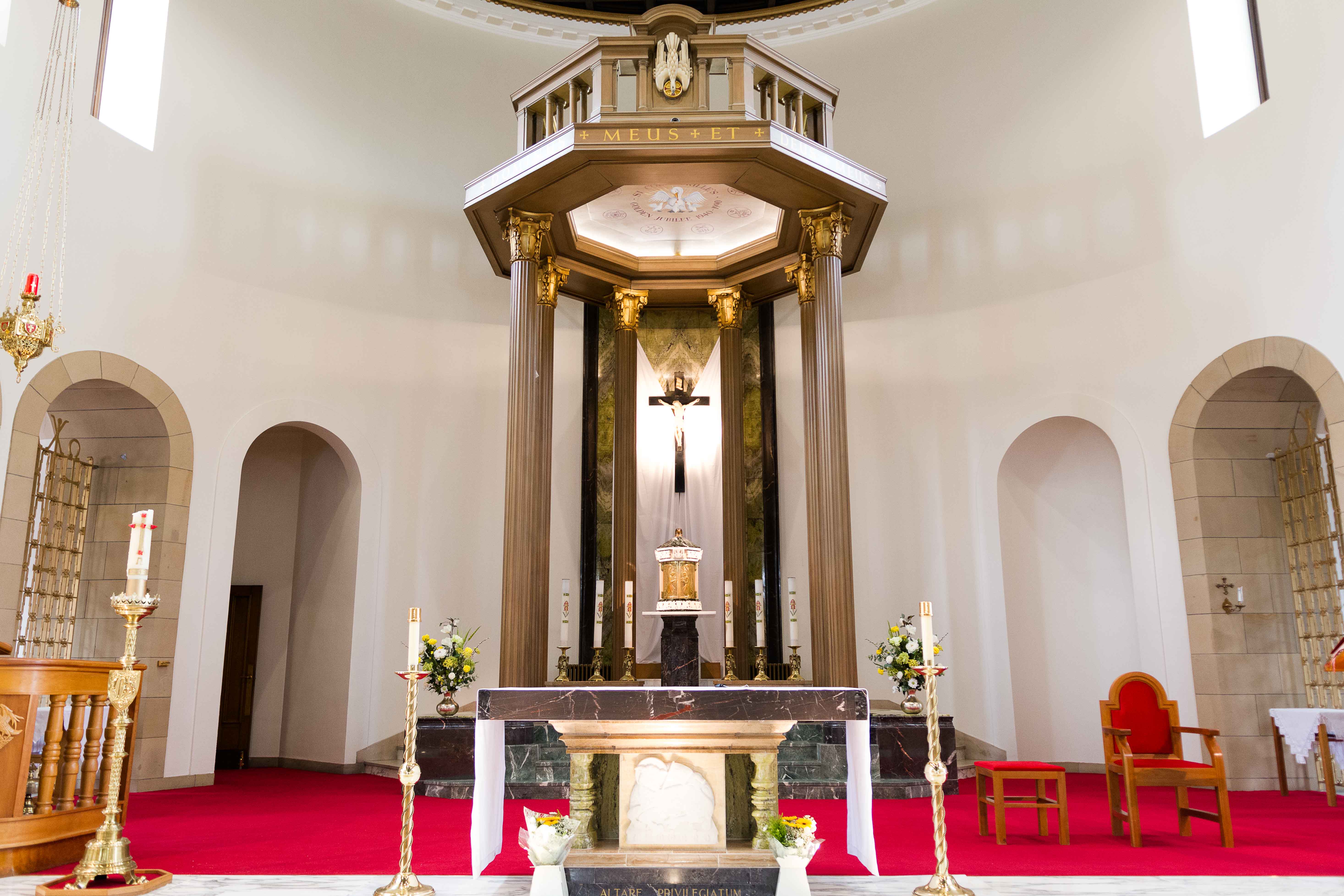 Since being opened in 1940, the church building has undergone various internal renovations, some structural and others decorative. Some, such as the moving of the altar from underneath the Baldachino towards the front of the sanctuary, resulted from liturgical changes that emerged from the Second Vatican Council. Ahead of the Golden Jubilee of the church building in 1990, the interior of the building was re-painted.
