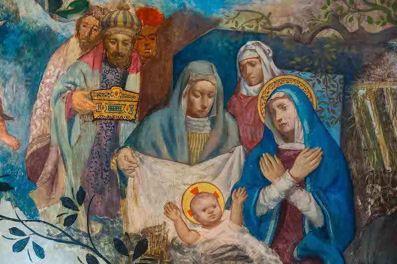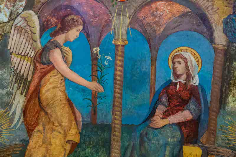In 1952 two fine modern artists, Mr. Walter Pritchard, of the Glasgow School of Art, and Mr. Wm. Crosbie, A.R.S.A., decorated the roofs of the side-chapels. In 2020, restoration work was carried out both to preserve the paintings and to restore them some of their original lustre.
