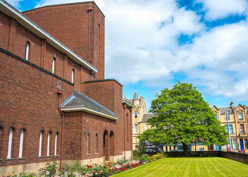 The 1940 church building was designed by renowned architect G.A. Coia, with a capacity of 1,000. It is an A-listed building , distinctive in scale and design.